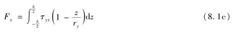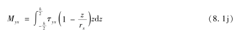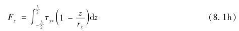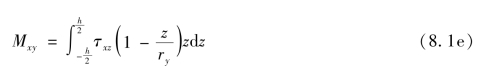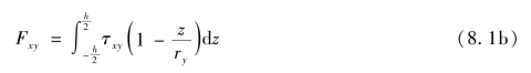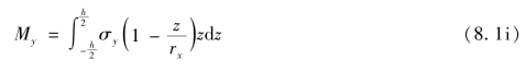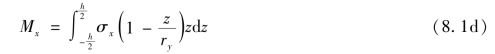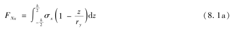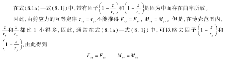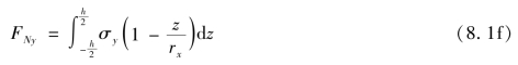 作用在窄条上的应力如图8.2(b)所示。所有如ef这样窄条上的应力就组成了ac截面的内力和内力矩,和在平板时的情形相似。去掉因子dy,得到的是单位长度上的内力和内力矩,它们分别是