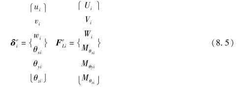 把平面应力与弯曲应力加以组合后,单元的结点位移和结点力如下: