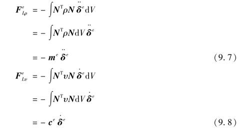 设单元惯性力与阻尼力所产生的单元等效结点荷载分别为