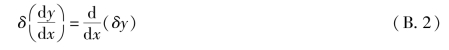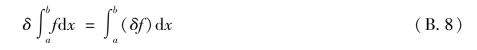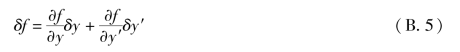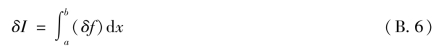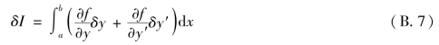 进一步考察式(B.4)所示的泛函I。当泛函y(x)及导函数y'(x)分别具有变分δy及δy'时,泛函I的增量显然为