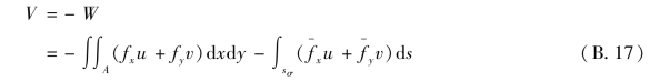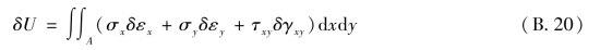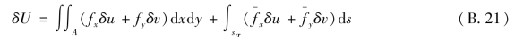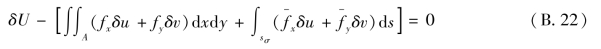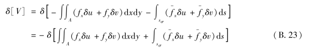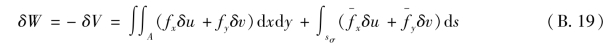 式(B.21)即为位移变分方程。它表示:在实际平衡状态发生位移的变分时,所引起的形变势能的变分,等于外力功的变分。从位移变分方程(B.21)出发,可以导出最小势能原理。