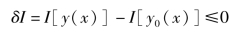 对于式(B.2)所示形式的泛函I[y(x)],也可以通过分析而得出相似的结论如下:如果泛函I[y(x)]在y=y0(x)的临近任意一条曲线上的值都大于或等不小于I[y0(x)],也就是一阶变分