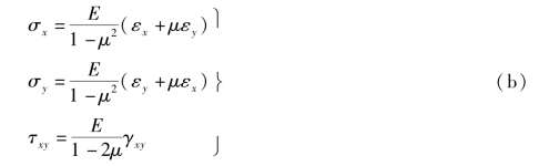 将式(c)分别对εx,εy,γxy求导,参照式(b),有