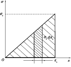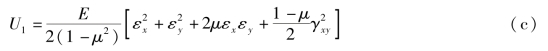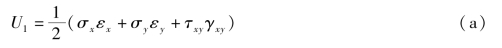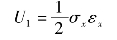 在单向受力状态下,弹性体在某一个方向(例如x方向)受有均匀的正应力σx,相应的线应变为εx。若能量守恒,在弹性体在变形过程应力σx所做的功全部转化为弹性体的形变势能。