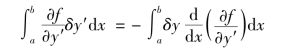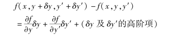 首先来考察函数f(x,y,y')。当函数y(x)具有变分δy时,导函数y'也将随着具有变分δy'。这时,按照泰勒级数展开法则,函数f的增量可以写成