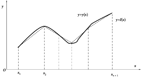 设y=y(x)在区间[a,b]上有定义,且已知在点a≤x1≤x2≤…≤xn+1≤b上的值y1,y2,…,yn+1,若存在函数I(x),使得
