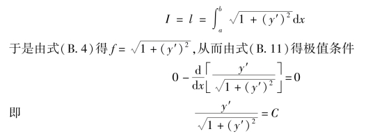 可见最短曲线为一直线。任意常数C1及C2可由边界条件式(B.10)求得。