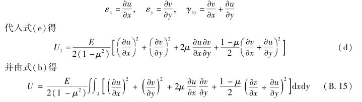 由式(B.15)和式(f)可见,形变势能是形变分量或位移函数的二次泛函。