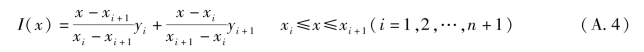 则I(x)为区间[a,b]上关于数据(xi,yi)(i=1,2,…,n+1)的分段线性插值,如图A.2所示。