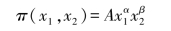 其中,x1和x2分别为农户投入种植粮食作物和经济作物的播种面积,π为收益,A为生产效率(表示技术因素),x1和x2的指数α和β之和为1。