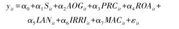 为了反映粮食直接补贴资金对粮食作物播种面积比重的影响,本小节构建了计量模型,即: