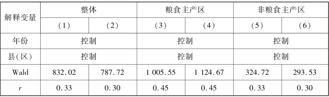 表5.5 农资综合补贴对农业播种面积影响的FGLS估计结果