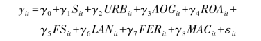 第一产业占比:农业是国民经济的基础,是工业和其他国民经济部门独立化的基础。城镇化率和农业产值占第一产业总产值的比重是影响农民收入的主要因素(刘秉镰,2010)。第一产业所占比重较大的地区,一般来说农业较发达,农业生产条件较好,相对来说,农村居民更多地依靠农业收入,其人均纯收入一般要低于依靠第二和第三产业的农户。因此,第一产业占比越高,农民人均纯收入可能越低。