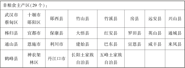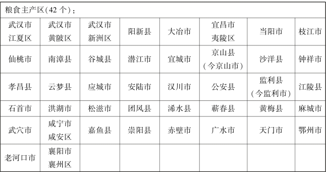 湖北省粮食主产区和非粮食主产区71个县(市、区)列表