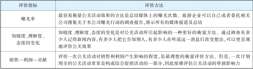 在公关活动实施后的一定时间内,要对公共关系成功与否进行评价,如表4-8所示,主要评价指标包括以下三种。