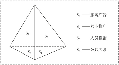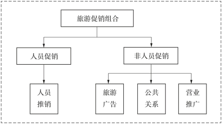 旅游促销组合,是一种组织促销活动的策略思路,主张旅游企业根据旅游产品和服务的特点和营销目标,综合各种影响因素,对广告、营业推广、公共关系、人员促销四种基本促销方式进行选择、编配和运用,将其组合成一个策略系统,使企业的全部促销活动相互配合、协调一致,最大限度地发挥整体效果,从而顺利实现企业目标。(图4-14)