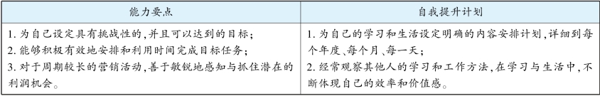 作为营销人员,在工作中,时间观念、工作效率非常重要,必须在规定的时间内,高水准完成自己的工作任务,通过成就导向高效率完成目标任务。不过值得注意的是,成就导向必须与影响力和人际理解力达到良好的平衡,否则可能会产生负面效果。