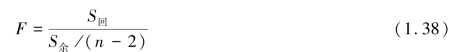 如果Y 与X 之间的线性相关关系显著,则S回的值较大,S余的值较小。 因而F 的值也较大;反之,如果Y 与X 之间的线性相关关系不显著,则F 的值较小。