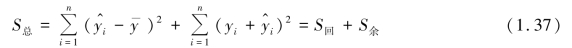式中S回称为回归平方和,它反映了回归值yi 的分散程度,这种分散是由Y 与X 之间的线性相关关系引起的。