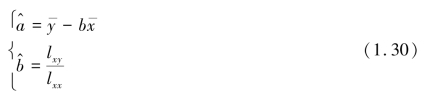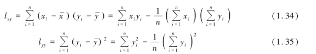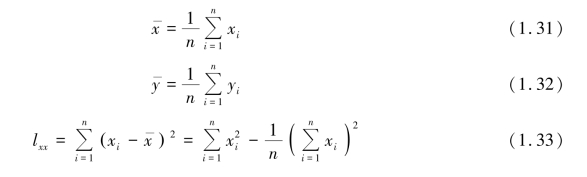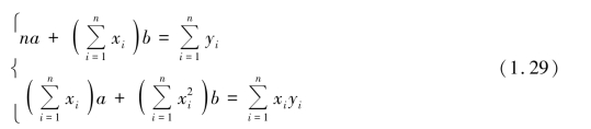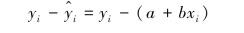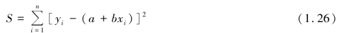 式(1.25)便是所要求的Y 和X 的定量关系式,称为回归方程。 要求出回归方程,就必须确定式中的a 和b。 下面用最小二乘法原理来求a 和b。实际测量值yi 和 的差异: