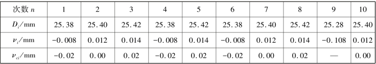 表1.3 小球直径测量数据表(千分尺:0 ~25 mm,0.004 mm)