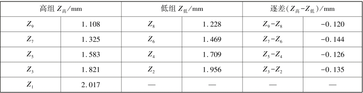 表1.6 用逐差法处理微小位移量表格2