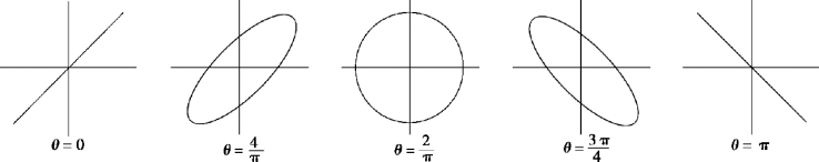 由上式可知,L 每改变一个波长λ,相位差就变化2π,通过观察相位差的变化Δφ,便可测出λ。 将发射器S1 和接收器S2 的正弦电压信号分别输入示波器的CH1 和CH2 通道,在屏上便显示出频率为1 ∶1 的李萨如图形。 改变L 时,两个谐振动的相位差从0 ~π,图形就从斜率为正的直线变为椭圆,再变到斜率为负的直线;相位差再由0 ~2π,图形又从斜率为负的曲线变为椭圆,再变回斜率为正的直线,如图2.6 所示。 为了便于判断,选择李萨如图为直线时作为测量的起点,移动S2,当L 变化一个波长时,就会重复出现同样斜率的直线。 读出移过的距离,就测出了超声波的波长。