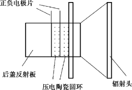 压电陶瓷换能器的结构如图2.4 所示。 头部用轻金属做成喇叭形,尾部用重金属做成柱形,中部为压电陶瓷圆环,螺钉穿过圆环的中心。 这种结构增大了辐射面积。振子纵向长度的伸缩直接影响头部轻金属,发射的波有较好的方向性和平面性。