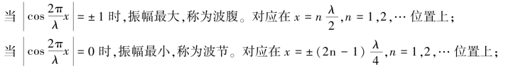 由上述讨论可以知道:任何两相邻的波腹或波节间的距离均为。