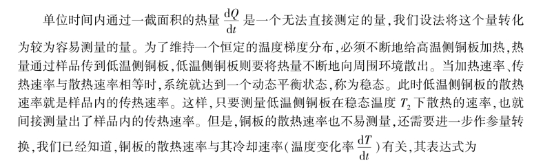 导热系数(热导率)是反映材料导热性能的一个重要参数,在科学实验和工程技术中都要涉及这个参数。 材料按导热性能可分为良导体和不良导体,通常导电材料大部分是热的良导体。 导热系数的测定大体上分为稳态平板法和动态法。 稳态平板法是测量不良导体导热系数的一种常用方法,该法也可测量良导体的导热系数。 本实验采用稳态平板法测量材料导热系数。