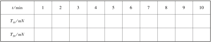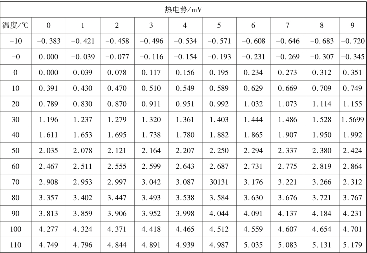 本实验选用铜-康铜热电偶测量温度。 温差100 ℃时,温差电动势约为4.27 mV,能测到为0.01 mV 的电压。 可以根据电压表示数与表2.11 中数据直接读出相应温度。