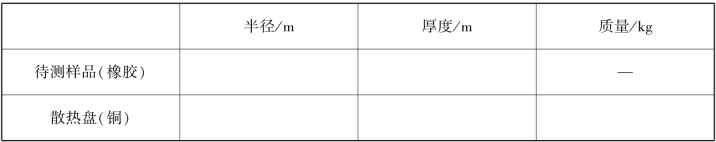 用游标卡尺多次测量待测样品盘和散热盘(下铜板)的厚度、半径,并用电子天平测量下铜板的质量后分别将数据填入表2.8 中。