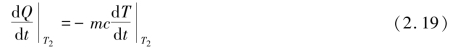 式(2.19)中m 为铜板的质量,c 为铜板的比热容,负号表示热量向低温方向传递。 因为质量容易直接测量,c 为常量,这样对铜板的散热速率的测量又转化为对低温侧铜板冷却速率的测量。 测量铜板的冷却速率可以这样测量:达到稳态后,移去样品,用加热铜板直接对下金属铜板加热,使其温度高于稳定温度T2(大约高出10 ℃)再让其在环境中自然冷却,直到温度低于T2,测出温度在大于T2 到小于T2 区间中随时间的变化关系,描绘出T—t 曲线,曲线在T2处的斜率就是铜板在稳态温度时T2 下的冷却速率。