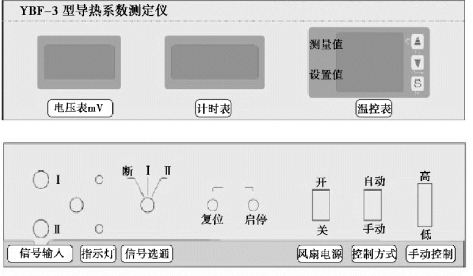YBF-3 型导热系数测定仪采用一体化设计,主要由加热器、数字电压表、计时秒表等部分组成,如图2.14 所示。