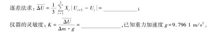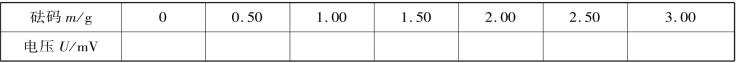 ③在砝码盘里依次加入0.500 g 的砝码,待稳定后记下电压表读数。 注意放砝码时应尽量轻。 每次增加0.500 g 砝码,待稳定后记下电压表读数Ui(i=1,2,…,6),填入表2.13 中。