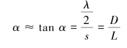 由式(3.9)可见,如果求出空气劈尖上总的暗条纹数,或测出劈尖的L 和相邻暗纹间的距离s,都可以由已知光源的波长λ 测定薄片厚度(或细丝直径)D。