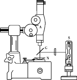 ②将牛顿环仪N 放在读数显微镜的平台上,调节45°反射镜G,如图3.4 所示。
