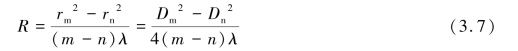 注:式(3.7)中,因第m 级和第n 级的序数差与第m 级和第n 级的级数差相等,所以在实际测量中,不用考虑观察到的牛顿环级数到底是多少。