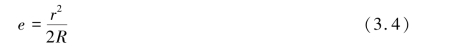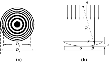 将平凸透镜的曲率半径记作R,环纹半径记作r,图中B 点处的空气厚度记作e,由图中三角形AOB 可以得到