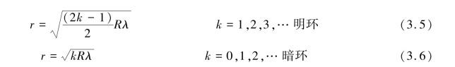 将式(3.4)代入式(3.1)和式(3.2),可得反射光中明环与暗环的半径分别为