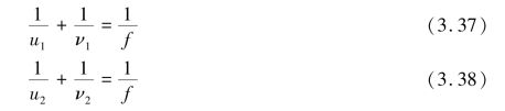 以上两式中, f 为透镜焦距,u 为物距,ν 为像距。