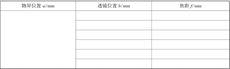 ①元件从左至右依次安放点光源、物屏、薄凸透镜、平面镜。 保持光源和物屏位置不变。记录物屏位置。