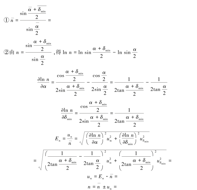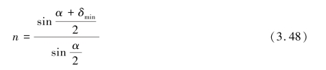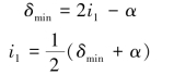 可以证明棱镜材料的折射率n、棱镜的顶角α 以及最小偏向角δmin 之间有如下关系: