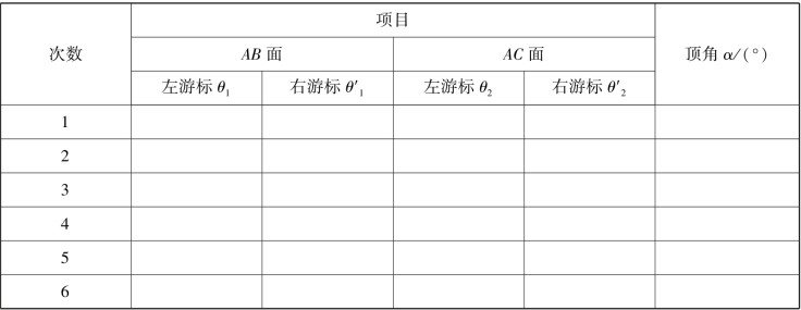 表3.12 测量三棱镜顶角数据