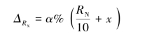 式中α=0.5(准确度指标);RN=0.01 Ω(基准值); x 为滑线标度盘示值。