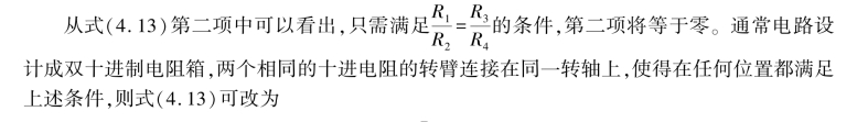 在图4.6 中,当IG=0 时,b、d 两点的电势相等(即φb=φd),此时电桥处于平衡状态,根据电压回路方程可知