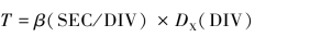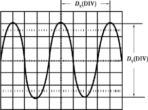 把待测信号输入示波器的Y 轴输入端,将扫描时间因数旋钮“SEC/DIV”旋到适当的位置,调节有关控制开关及旋钮使显示波形稳定,读取被测信号一个周期的波形所占格数DX(DIV), 读取扫描时间因数旋钮“SEC/DIV”的挡位数β,如图4.14 所示,则