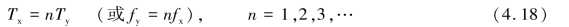 由图4.12 可知,如果Tx=2Ty,在荧光屏上就显示出两个完整的正弦波;同理,如果Tx=3Ty,则在荧光屏显示出3 个完整的波形。 以此类推,如果要示波器显示出完整而稳定的波形,扫描电压的周期Tx 必须为Y 偏转板电压周期Ty 的整数倍数,即