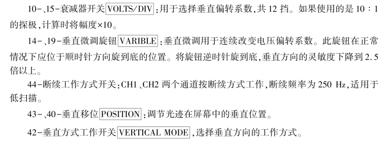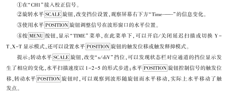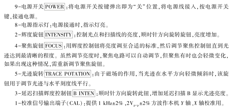 ③示波器上所有开关与旋钮都有一定的强度与调节角度,使用时应轻轻地缓慢旋转,不能用力过猛或随意乱旋动。