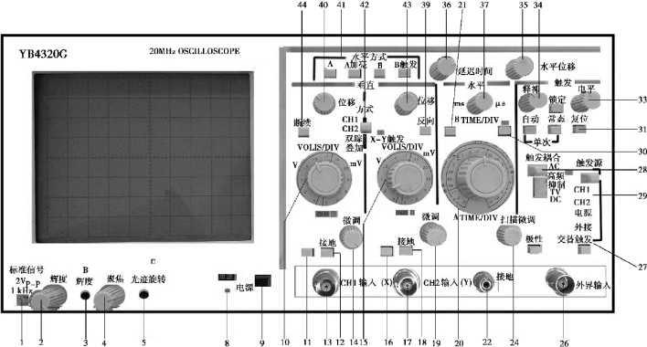 YB4320G 型双踪示波器面板图如图4.17 所示。